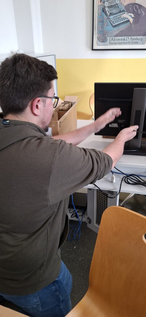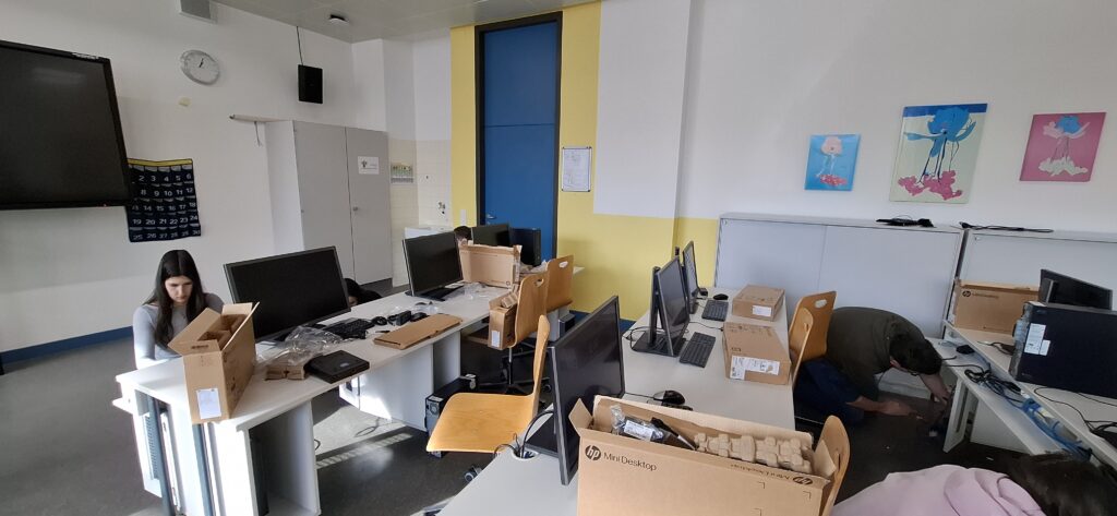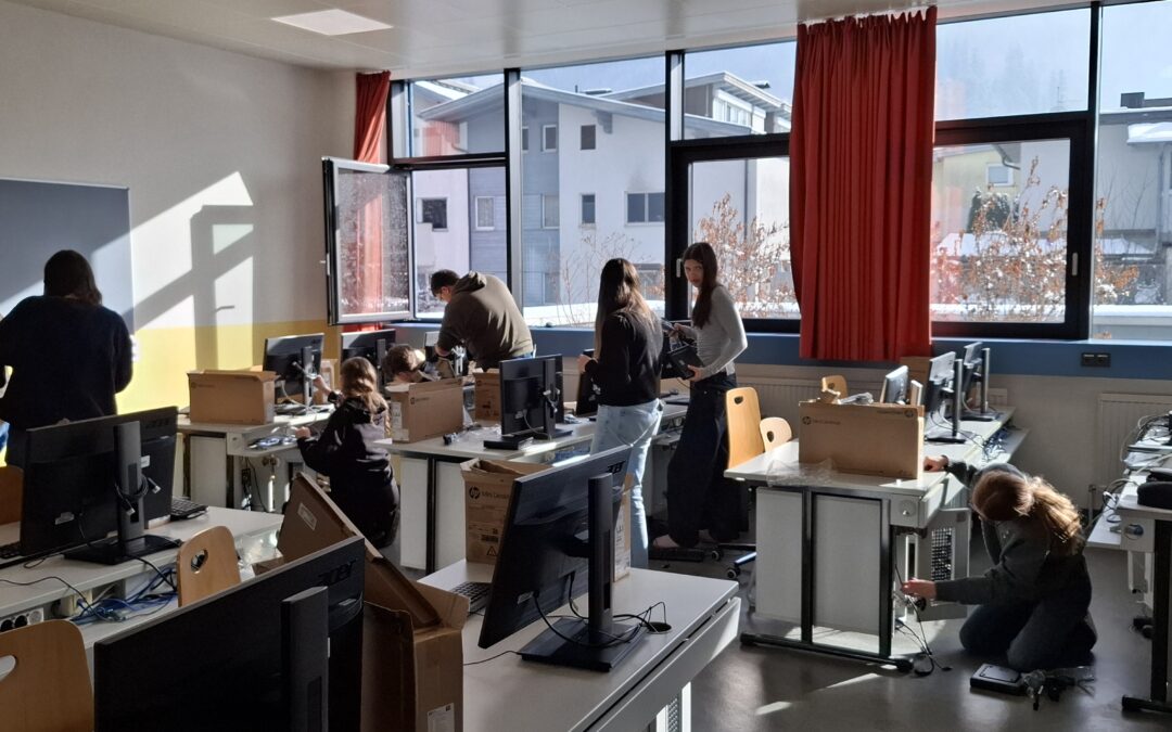 Die SchülerInnen der 3BK haben heute den EDV-Saal DV5 neu ausgestattet und dabei ihr im Unterricht erworbenes Wissen erfolgreich angewendet. Statt den – bereits in die Jahre gekommenen – HP ProDesk Geräten der 1. Generation begeistern jetzt die neu gekauften ProDesk 4 Mini G1i PCs. Im Fokus standen Hardware, Verkabelung, Softwareinstallation, IT-Wartung und IT-Betreuung.
