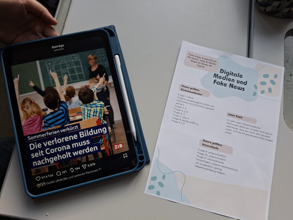 Besonders spannend: Die Schüler:innen erstellten eigene Fake News und präsentierten diese anschließend ihren Mitschüler:innen. So wurde nicht nur theoretisches Wissen vermittelt, sondern auch die Fähigkeit zur kritischen Medienanalyse gestärkt.
