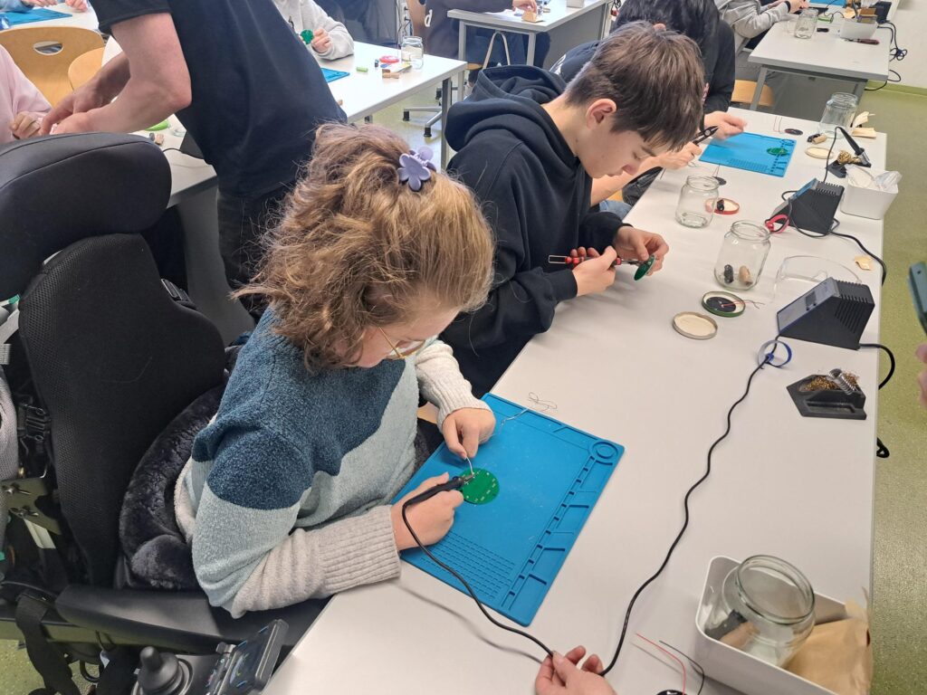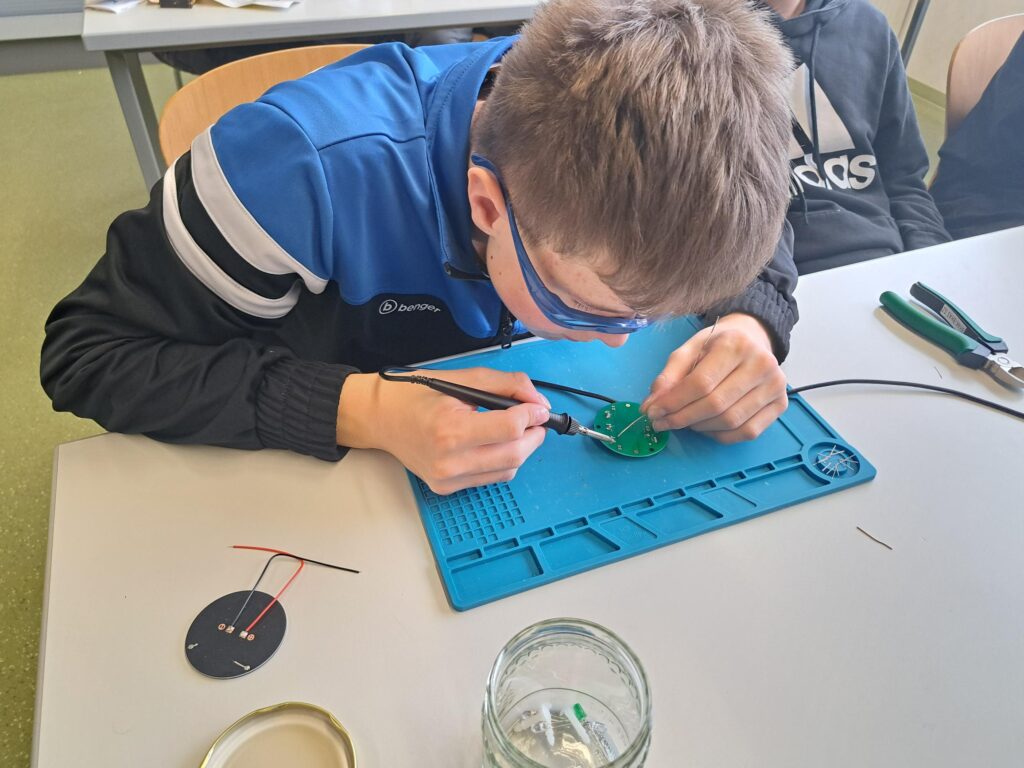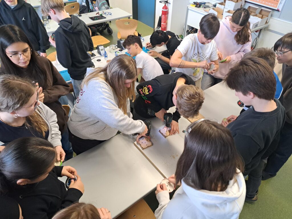 Die Klasse arbeitete mit großer Begeisterung an ihrem Projekt und konnte durch diesen Workshop erleben, wie Technik und praktisches Lernen miteinander verbunden werden können.