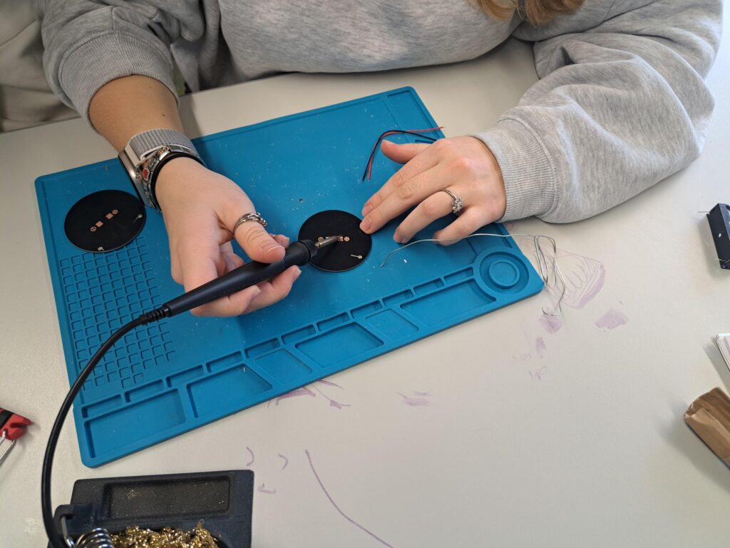 Am 17.02.26 wurde die 1BK durch Stefan Strappler vom fablab Innsbruck in die Welt der Löttechnik eingeführt. In einem mehrstündigen Workshop bauten sie Schüler:innen ihre eigenen Solarlampen, indem sie Kabel, Widerstände und LEDs auf Platinen löteten.